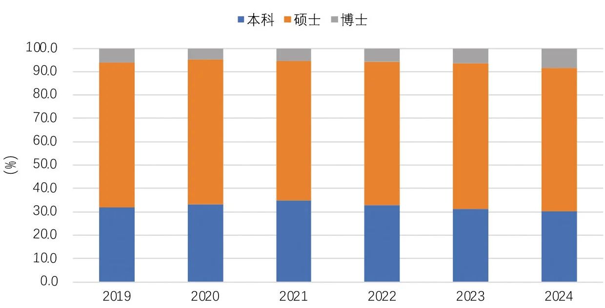 △图7:2019年-2024年申请国(境)外学历学位认证的学历学位分布